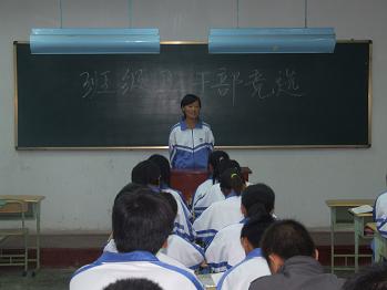 选举会开始之初,08级新生班主任首先进行了动员讲话,提出班委是班集体的核心层,选好班干部十分重要,强调了系里对08级班委会组成新要求,即实行班级管理宿舍化,减少班委数量,把宿舍舍长作为班委成员之一,形成班主任—班长—舍长的管理模式,从而减少管理跨度,提高工作效率。希望同学们能逐步建立起班级的意识,通过班团委成员和班级同学们的一致努力把08级新生班打造成一个有强烈团队意识、高凝聚力、同时具有专业特色的班级。随后,有竞选意愿同学们纷纷走上讲台,向全班同学表述了自己的竞选意愿、阐明了自己的竞选理念、流露了自己的竞选心声。同学们有的表示希望能获得一个全心全意为同学们服务的机会,有的表示想通过担任班委来加深与同学之间的相互交流和了解,有的表示想进一步锻炼自己的能力。讲台上他们展现着自己的活力,讲述着自己的心志,用自己的执著演绎了激情的三分钟,竞选活动井然有序,最后每一位同学经过慎重考虑,把选票投给了自己认为最有能力的选手。