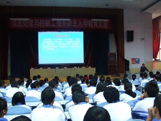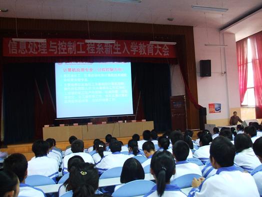 为帮助2009级新生尽快熟悉老员工活,加强对所学专业领域的认识,掌握各专业的学习方法和毕业后的就业方向,同时培养新同学热爱专业的思想,提高新同学的学习兴趣,9月5日上午,信息处理与控制工程系在西阶一教室召开了2009级新生入学教育大会。
