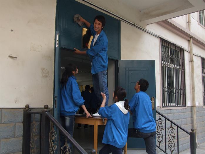 同学们一进小区就受到了街区负责人的热烈欢迎,没等工作人员安排完任务,同学们就已主动拿起了扫把、簸箕,端起水盆、拿起抹布,分成几个小组,开展了热火朝天的清扫活动。无论是活动室,还是楼道里,活跃着同学们辛劳的身影。尽管大汗淋漓,又是尘沙弥漫,但是,每位同学都把这次公益活动坚持到底,用自己的行动诠释了活动的意义,唱响了“新时代文明老员工”的主旋律。他们的辛勤劳动得到了社区居民的一致赞扬,同学们心中充满了自豪感。社区党支部书记表示,这样的活动确实有意义,社区建设不仅需要居民的理解和支持,同时也需要全社会的帮助,希望同学们以后常来小区进行活动。