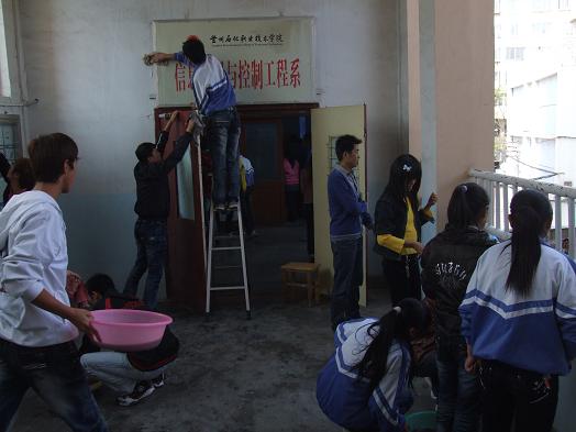中午12:30,员工党员及入党积极分子130余人齐聚信控系实训机房,带着自行准备的劳动工具在辅导员老师统一指挥下,清扫了机房和楼道的卫生。活动中,全体党员及入党积极分子表现出了对工作认真负责的态度,虽然同学们牺牲了休息时间,但是大家仍然以饱满的精神、认真的态度投入到义务劳动中,劳动现场一派热火朝天。员工干部身先士卒,党员及入党积极分子干劲十足,大家不怕脏、不怕累、相互协作,对机房卫生进行了彻底的清理。经过一个多小时的辛勤劳动,机房的门窗玻璃透明可见,电脑桌椅、显示器和机箱焕然一新,死角的垃圾也被清理得干干净净。看到这一切,同学们一张张挂着汗珠的脸上洋溢起幸福的微笑。