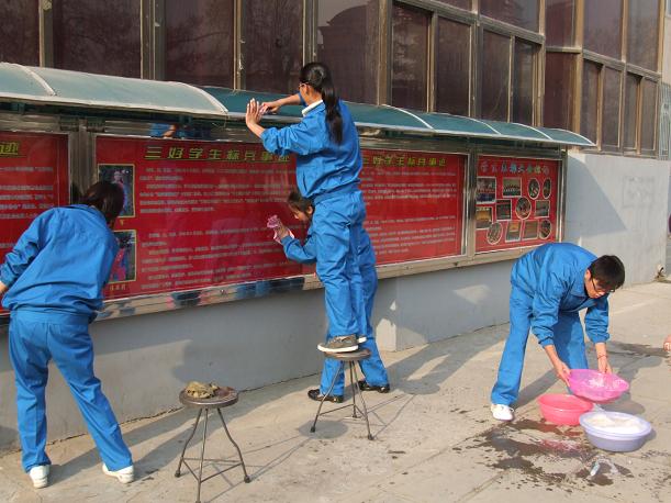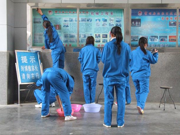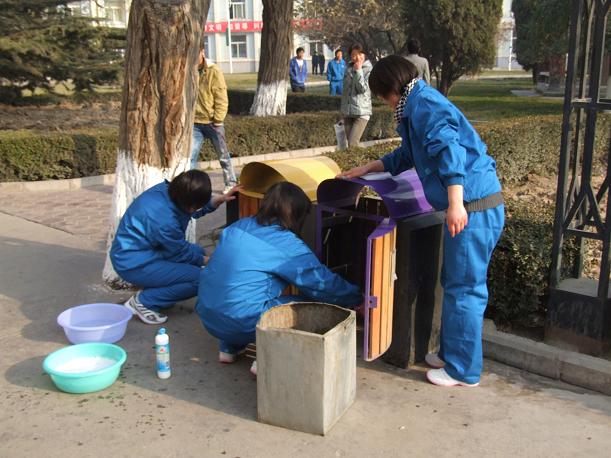 上午10时,同学们带着自行准备的劳动工具在辅导员老师统一指挥下,仔细擦拭校园大门两侧的牌匾、校园内的宣传栏、道路两旁的灯柱、座椅。同学们认真地打扫着每个角落,有的捡树叶,有的捡垃圾,有的扫地,活动现场一派热火朝天。员工干部身先士卒,同学们干劲十足,大家不怕脏、不怕累、相互协作。经过一个多小时的辛勤劳动,校园周围的纸屑、烟头不见了,路灯的立柱、垃圾箱焕然一新,死角的垃圾也被清理的干干净净。看到这一切,同学们一张张挂着汗珠的脸上洋溢起幸福的微笑。同学们说:这次党校培训的学习,不仅学到了有关党的理论知识,而且这次义务劳动也是一次理论知识的实践,中国共产党的宗旨是全心全意为人民服务,作为一名入党积极分子,应该从自己做起,从身边的小事做起,用自己的实际行动来争做一名合格的入党积极分子。