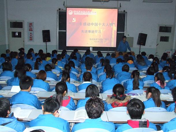 在组织观看了“感动中国2011年度人物评选——感动中国颁奖典礼”的视频后,两弹元勋朱光亚、坚守雪域高原的支教者胡忠谢晓君夫妇、两袖清风的忠诚卫士刘金国、跨越海峡两岸的希望之翼张平宜、为民造福的好书记杨善洲、烤羊肉串的“慈善家”阿里木、“最美妈妈”吴菊萍、悉心照料养母12年的孟佩杰、妙手仁医吴孟超、无臂钢琴师刘伟平凡而伟大的事迹对同学们的心灵产生了强烈的震撼。在之后的讨论环节中,这些拥有朴素而真挚人性之美的平凡“伟人”成了同学们争相谈论的典范,同学们纷纷表示:在他们身上体现的是奉献,是责任,是对真善美的追求,在平凡中孕育着伟大,在点滴中折射着高尚,倡导广大同学从我做起,从小事做起,感恩父母、善待他人、乐于奉献、报效社会。