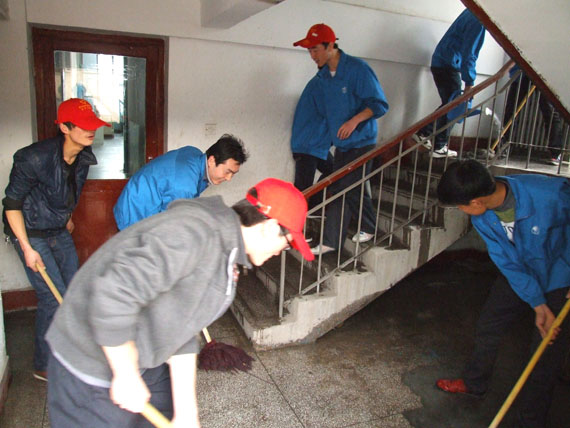 下午4点,在团总支、员工会干部的统一带领下,近60名志愿者在领取清洁任务后很快进入工作状态,党员和员工干部身先士卒,在他们的带领下,同学们以饱满的精神、认真务实的态度、相互协作、仔仔细细的对实训基地的门窗、电脑桌椅、显示器、键盘和机箱进行了全面彻底的打扫。经过两个多小时的认真清扫,实训基地的门窗玻璃透明锃亮,电脑桌椅、显示器、键盘和机箱焕然一新,楼道走廊的垃圾和废弃物也被一并清理。虽然很辛苦,但当同学们看着自己辛勤劳做的成果时,挂满汗珠的脸上也都洋溢着满意的笑容。