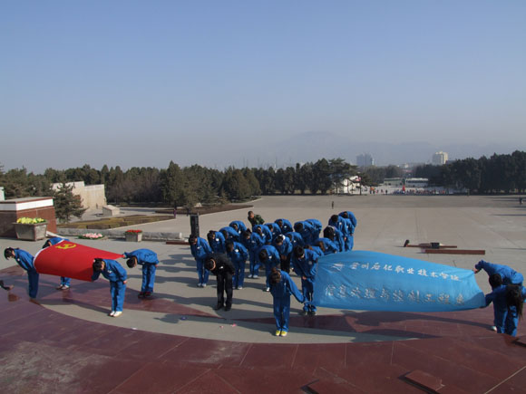 早晨8点,同学们排着整齐的队伍,举着党旗、系旗,集体胸带白花,党员佩戴党徽,在系团总支书记的统一带领下,迈着沉稳的脚步踏向华林山烈士陵园。首先,员工代表带着深沉的敬意向革命先烈敬献了花圈,并集体默哀三分钟,以表达对先烈们无尽的怀念和敬仰。随后,党员干部在烈士纪念碑前、面对党旗、系旗举起右拳庄严宣誓:继承先烈遗志,弘扬革命传统,谨记先烈教诲,勤勉自励,誓做栋梁,以我壮志豪情,创造美好未来,以我火红青春,争做忠实接班人!誓词久久的回荡在园林上空,萦绕在同学们心间。之后,所有人员向烈士三鞠躬,并敬献上胸前小白花,表达了对革命先烈的哀思。最后,参加活动全体人员在讲解员的带领下参观了兰州战役纪念馆,更深层次地了解了先辈的英勇事迹。纪念馆入口横幅上“你们活在我们的记忆中,我们活在你们的事业中”的标语,更是引发了全体同学的共鸣。