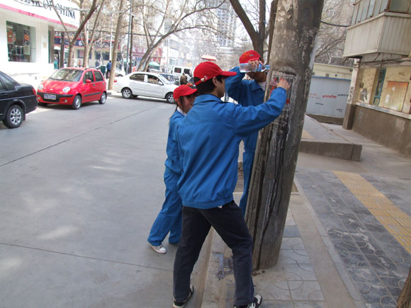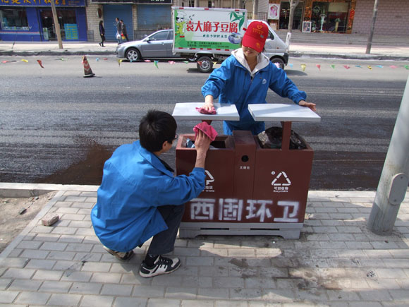 早上10点,40名志愿者个个精神抖擞统一着装,自带清洁工具,对福利西路的路灯立柱、路面垃圾、墙壁和电线杆上的小广告、垃圾箱、文艺宣传栏上的尘土、污渍进行了全面清理、擦洗。活动中志愿者们干劲十足、不分你我,劳动场面十分热烈。经过一个小时的辛勤劳动,整个街区的环境卫生有了很大改观,路面上的烟头、碎纸屑、瓜果皮被清扫的干干净净;墙壁和电线杆上的小广告也都没有了;垃圾箱、文艺宣传栏在阳光的映衬下显得更加明亮。
