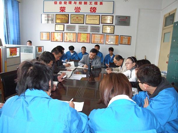 为了进一步加强订单班员工管理工作,增强班级的凝聚力、向心力,近日,信息处理与控制工程系在系办公室组织召开了订单培养班员工管理座谈会会,系领导、辅导员、订单班班主任及广汇煤化工订单培养班班长、团支书参加了会议。