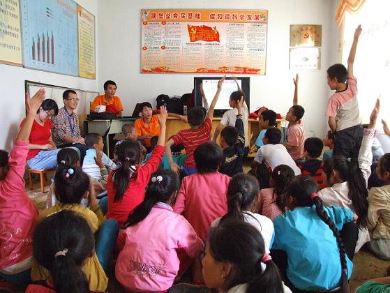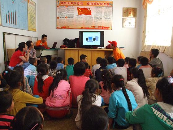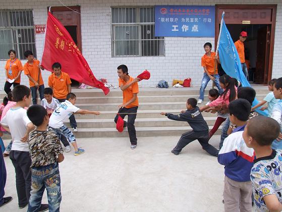 与村领导的交谈得知,乡民和孩子们希望公司组织的小分队支教活动能够继续,这也是“信息先锋,爱心服务”小分队成员之前做了充分的准备工作。由于小分队每天早上要自己做饭,所以支教活动的时间定在8:00整准时开始,但是让队员们非常惊讶的是,孩子们早上7点钟就陆续来了。带队老师及时调整,要求队员们早起,组织早来的同学进行早操、晨练等活动,并规定7:30---8:00为“阳光晨读”时间,布置晨读内容,同时对晨读效果进行检查,对于表现好的同学有事先准备好的文具作为奖品。每天8:00整,支教正式开始,通过调查了解,同学们的英语和计算机知识比较薄弱,所以队员们主要围绕英语学习、计算机基础知识讲解、《三字经》、《弟子规》等内容开展教学,针对部分中员工组织单独集中教学。看到孩子们大清早就来到工作点的积极性和如饥似渴的学习热情,队员们每天晚上都认真备课,采用积极鼓励、奖品激励、改编顺口溜等方式,思考着如何更好的组织教学,使自己的课堂也成为“有效课堂”,同时如何寓教于乐,让孩子们在快乐中学到更多的知识。队员们认真严谨、声情并茂、风趣幽默的教学方式深受孩子们的喜欢。