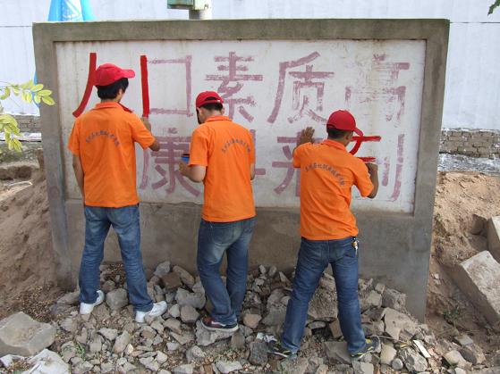 同时为了给新农村建设出一份力,积极营造崭新的乡村新面貌,小分队队员通过翻新村头巷尾的标语,清除路边堆积的垃圾等方式贡献着自己的绵薄之力。同时在临走的前一天对公司驻榆树村“联村联户,为民富民”工作点进行打扫卫生,它不仅是公司的办公场所,更代表着公司的形象,为了维护公司的良好形象,在老师安排下,队员们认真清扫着每一个台阶,擦洗着每一扇门窗,同时对“农家书屋”架板等卫生死角进行了全面清扫。