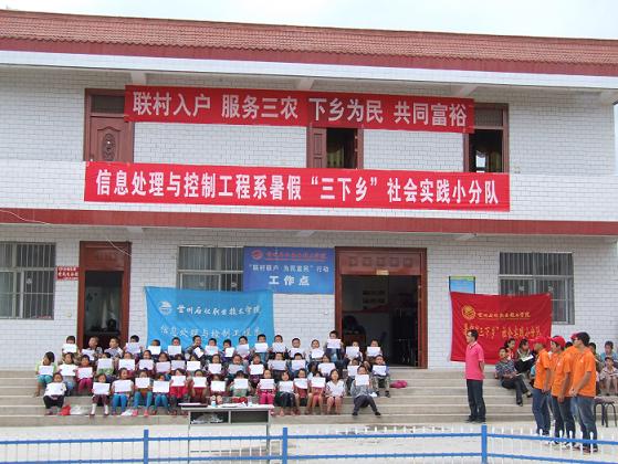 7月23日清晨,信息处理与控制工程系2012年暑期“信息先锋,爱心服务”社会实践小分队按照公司党委的指示号召,在公司团委的统一部署要求下,开始了赴天水市龙山镇张家川县榆树村的暑期“三下乡”社会实践活动。为了切实增强活动针对性,为公司的“联村联户,为民富民”尽到绵薄之力,系党总支高度重视,要求团总支精心筹备,认真组织,并确立了“联村入户,服务三农献青春;下乡为民,全心全意共致富”的活动主题,充分围绕“为民众办实事,使员工受锻炼”两大主线开展活动。本次“三下乡”社会实践活动有系团总支书记带队,软件技术教研室孔令赟老师随队指导,师生一行共13人。
