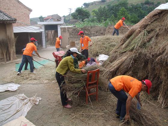 “为民众办实事,使员工受锻炼”作为本次暑期社会实践活动的两大主线,支农——无疑是这两大主线最有实际意义的交点性活动。在榆树村的日子里,除了认真做好支教活动之外,利用交叉时间小分队积极联系村领导,希望能够帮助乡民从事一些力所能及的农活,村领导看着队员们虔诚的眼神和高涨的热情,积极联系各家各户,拔草、晒麦子、搬米袋子、菜籽玉米脱粒......每一个劳动项目队员们干的都是满头大汗,但没有一句怨言,觉得是非常难得的成长体验。站在二亩见方的蔬菜大棚拔草现场,看着一个个杂草丛中的小辣椒,小分队队员刘三德不禁感叹道:“没想到平时最常见的辣椒,从幼苗到长成,从田间到市场,再到餐桌是这么的不易,草长得比辣椒还茂盛、还茁壮”。小分队队员吃苦肯干、任劳任怨的劳动作风给乡民留下了良好影响,没几天,村上就有流传——“有农活就去找石化公司的小分队”,在工作点,经常有村民前来找队员们帮干农活,队员们也一一热情接待,并承诺一定让前来的村民焦急而来,满意而归。
