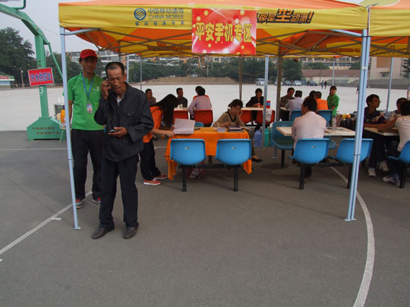 软件测试121班刘天旭的家长刘柱春在迎新点着急万分想给家人报个平安,但是手机没有了花费,又找不到公用电话,这时,他看到了信控系迎新点的“平安”手机专区,在询问之后得到了志愿者的热情接待,接过“平安”手机之后激动地说到:“娃他妈,我和孩子已经安全到公司办完手续了,手机没电啦,你们再不用担心了……”在考虑到新生和家长经过长时间的颠簸,许多新生来到公司不顾旅途的疲惫,急着打电话给家人报平安,但是出现还没有手机或没费、没电等情况,也找不到公用电话,“党员服务站”特意设立了“平安”手机专区为家人报平安。
