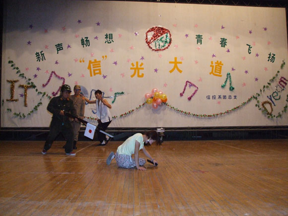 本次晚会在系领导的重视下,系团总支进行了周密的策划部署。活动前期,员工干部通过海报、传单等形式作了广泛宣传动员,同时征集了诸多优秀的节目(歌曲、小品、武术、话剧等),经过层层筛选,最终确定了节目单。 晚会在欢天喜地的舞蹈《吉祥谣》的节奏中拉开了帷幕,整台晚会节目主题突出,异彩纷呈。舞蹈《欢乐跳吧》、《溜溜的康定溜溜的情》、《快乐崇拜》全面彰显了欢快、惬意,青年的活力、飞扬的舞步在舞台上闪耀,青春的活力在笑声中绽放。舞者们舞姿轻灵,身体软如云絮,双臂柔若无骨,犹如花间飞舞的蝴蝶,山间潺潺的流水,使现场的每一位观众如饮佳酿,醉得无法自抑。武术协会带来的《石化武魂之藏龙卧虎》更是一展石化学子风采,武者们静若伏虎、动若飞龙、缓若游云的舞台表演,书写了中国功夫的魅力。接下来,过程控制112班张玉泉的京剧节目《卖水》更是别具一格,使得以听流行音乐为主的老员工们一次听觉与视觉的冲击,给了同学们一次与国粹艺术近距离接触和洗礼。小品《快与慢》和《高中那点事》表演者用诙谐幽默的语言、夸张的动作唤起了老师、同学们内心的欣喜,笑声、掌声、喝彩声此起彼伏,不绝于耳,将晚会推向了一个高潮。随后的节目更是精彩不断,高潮迭起,歌伴舞《映山红》和话剧《二丫放羊》以回忆红色革命故事为契机,警示青春年少的同学们要时刻记得“勿忘国耻,理性爱国”,尤其是在钓鱼岛事件中,要以正确的方式去表达寸土必争的决心和信心。一首歌曲一份情,俞树年同学倾情演唱的歌曲《爱你一万年》,不仅感染了现场的每一位同学,也传递了学长、学姐对每位新同学最热烈、最美好、最真挚的欢迎和祝福,将晚会又一次推向了高潮。最后,晚会在合唱《相亲相爱一家人》的歌声中拉下帷幕,但信控系这个大家庭的温情却久久驻留在每一个人得心田,并不断传递。