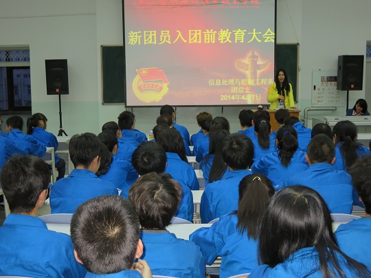 为弘扬爱国主义精神,进一步加强团员意识教育,增强团组织的凝聚力和战斗力,4月1日晚,信息处理与控制工程系在西阶三举行“新团员入团前教育大会”,系团总支书记、准备入团的全体同学参加了本次大会。