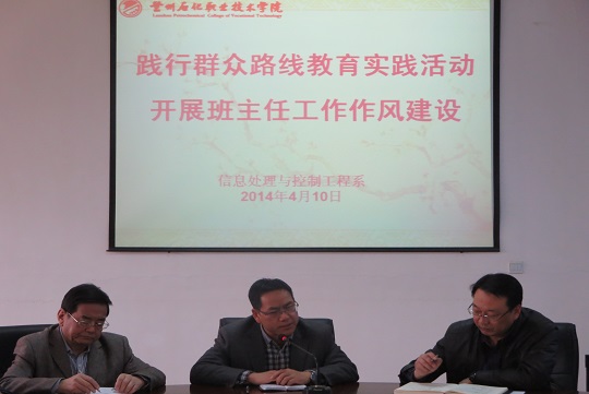 4月10日下午,信息处理与控制工程系在东区主教学楼二楼会议室召开了“践行群众路线教育实践活动促进班主任工作作风建设”的班主任工作会议,系办全体人员、教研室主任、全体班主任参加了本次会议。