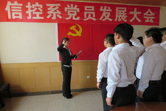 会上9名入党积极分子分别宣读了自己的入党志愿书,表明了自己的入党决心,陈述了自己对党的认识,表达了自己积极向党组织靠拢的迫切愿望。接着,由入党介绍人对积极分子进行了全面的介绍,全体党员同志进行了评议并举手表决,一致同意吸收缑玉祥等9位重点培养对象为预备党员,党总支书记分别对于9名新党员进行谈话。提出了将来对新党员的希望跟要求。接着,新党员在党旗下进行了庄严的宣誓。最后,新党员纷纷发言,表示要铭记自己加入中国共产党的誓言,并且从实际出发去实现自己的诺言。同时,牢记全心全意为人民服务的宗旨,在以后的工作生活中以党员的标准严格要求自己,积极努力学习,提高自己道德修养和文化素质,全面发展和完善自己,积极为党服务,发挥党员模范作用,争取成为一名优秀的共产党员。