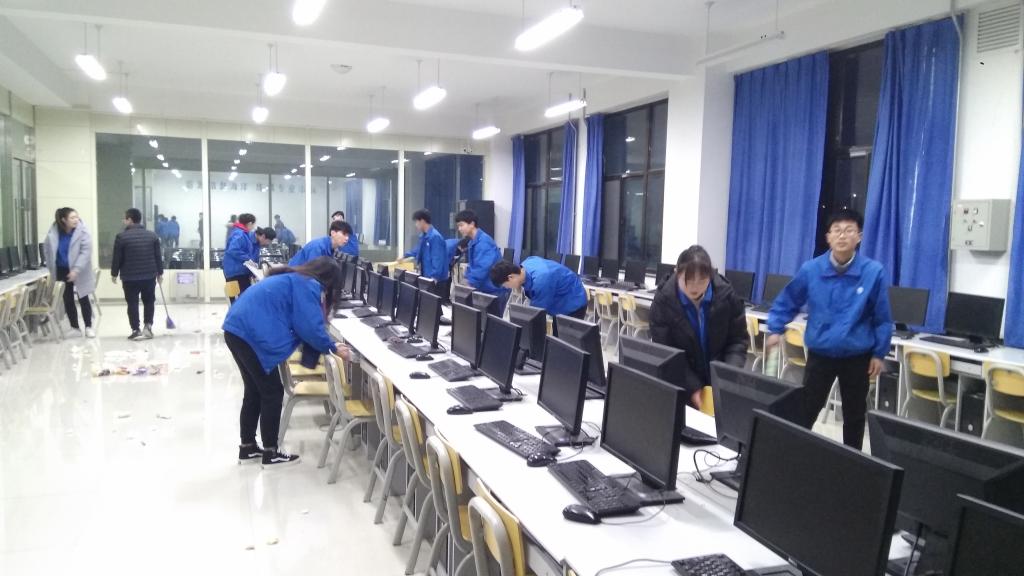 在活动过程中,大家有条不紊,热情高扬,将报告厅和实训基地内各角落的垃圾、座椅、实训设备等进行了彻底的清理。在劳动过程中大家互相帮助、互相合作,展现了员工党员团结协作的精神。经过了一个多小时的辛苦劳动,报告厅和实训基地的面貌变得焕然一新,呈现出了一幅干净而整洁的画面,为同学们营造出了优美的学习环境。