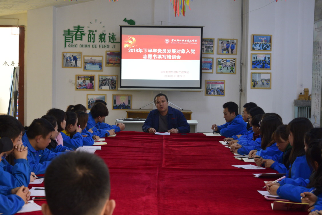 培训过程中,员工党支部负责老师以党的基本知识、党的十九大精神、习近平新时代中国特色社会主义思想、社会主义核心价值观为主要学习内容,要求同学们端正入党动机,坚定理想信念,争做合格党员。培训还就志愿书填写、各项材料申报、培养人谈话等事项作了详细解说和安排。