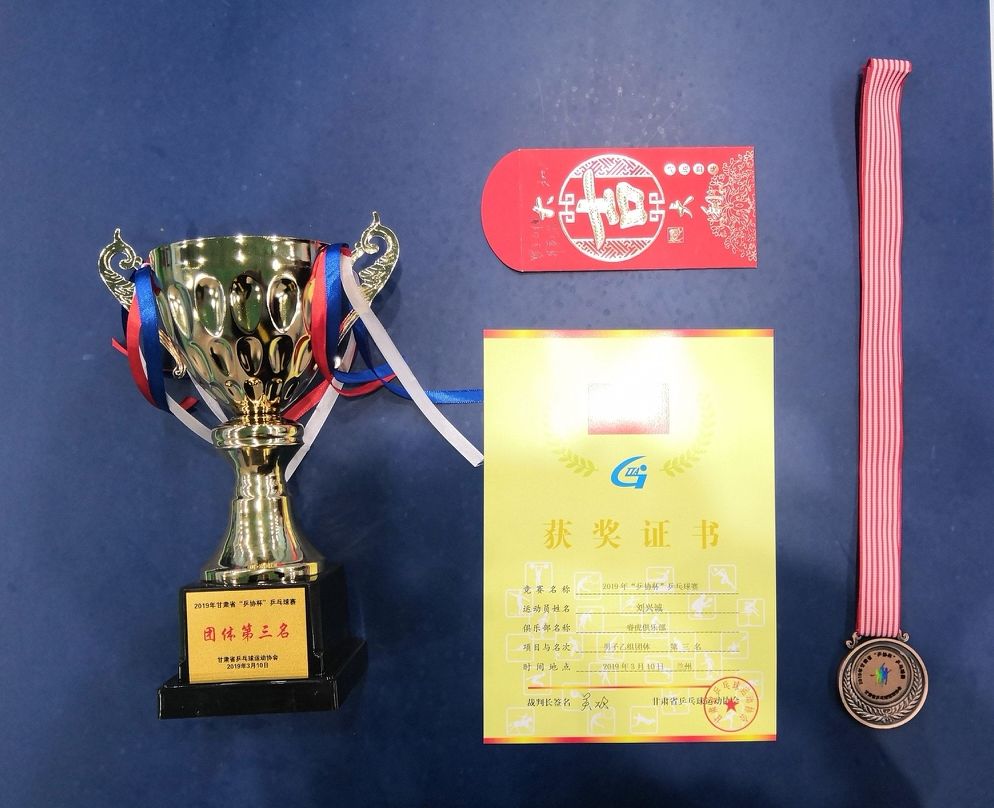 2019甘肃省“乒协杯”乒乓球赛团体第三名
