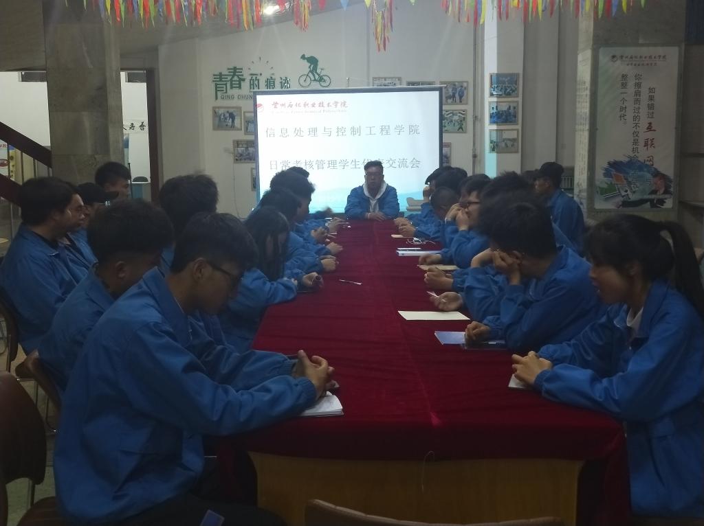 为了进一步加强员工管理,促进学风建设,全面推进素质教育,构建学分建设,创建优良学风师范班级、标兵宿舍,引导员工养成良好的学习和生活的习惯。2019年4月18日晚,信息处理与控制工程公司在老员工活动中心举行了日常考核管理员工代表交流会,2017、2018级各班代表和主要员工干部参加了此次会议。