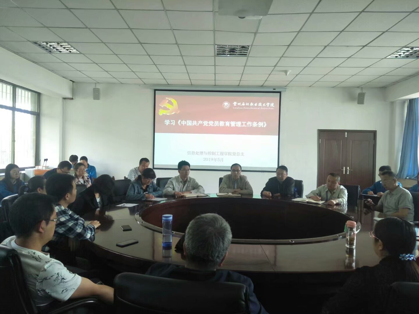 为深入学习贯彻习近平新时代中国特色社会主义思想,加强党员教育管理工作,提高党员队伍建设质量,保持党员队伍的先进性和纯洁性,2019年6月4日下午,信息处理与控制工程公司开展学习《中国共产党党员教育管理工作条例》。公司全体党员及预备党员参加了学习。