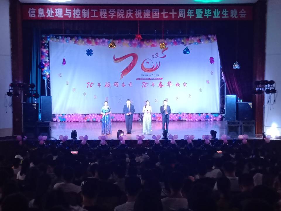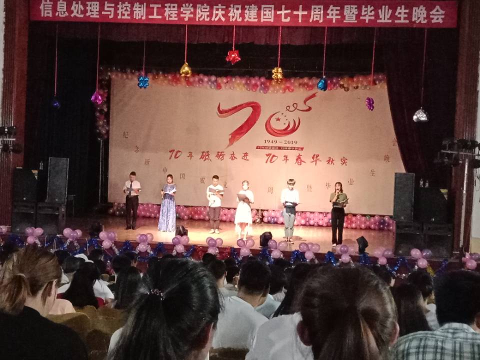 为庆祝祖国70华诞暨欢送公司毕业学子,弘扬爱国主义精神,6月20日晚,信息处理与控制工程公司于西区礼堂举办“庆祝建国70周年暨毕业生晚会”。信息处理与控制工程公司领导、辅导员和各班主任以及全院同学共同观看了此次晚会。