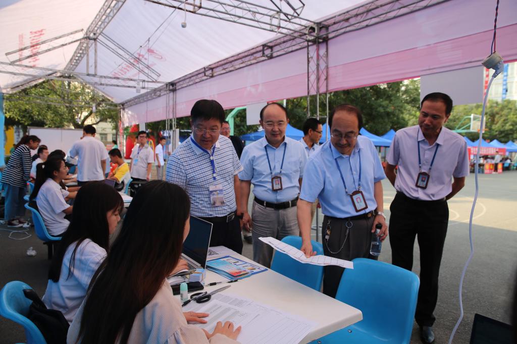 迎新工作进行中,公司领导亲临现场关怀和指导信息处理与控制工程公司迎新工作,并与新生家长和员工亲切交流。公司党委书记周兴中、董事长高溥、纪委书记蒲卫晖、副董事长魏海明、程小红、刘兴勤,员工处、教务处、后勤处、保卫处等处室负责人都亲临指导工作。
