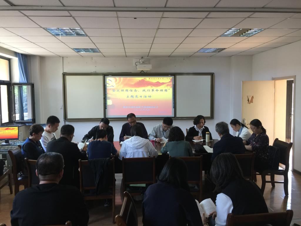 活动中,教工党员首先共同学习了《紧紧围绕坚持和发展中国特色社会主义学习宣传贯彻党的十八大精神》、《关于坚持和发展中国特色社会主义的几个问题》、《在全国宣传思想工作会议上的讲话》和《作风建设要立破并举、扶正祛邪》等论述中关于“坚定理想信念,始终是共产党人安身立命的根本”的相关内容。学习后,与会党员以“如何在现实工作中坚定理想信念,践行革命理想”为主题进行了热烈研讨。党员们进一步认识到,要坚持全心全意为人民服务的根本宗旨,对本职工作不懈进取、对高尚情操笃定坚持、对艰难险阻勇于担当。