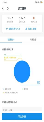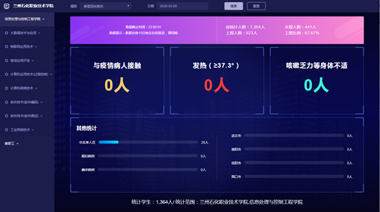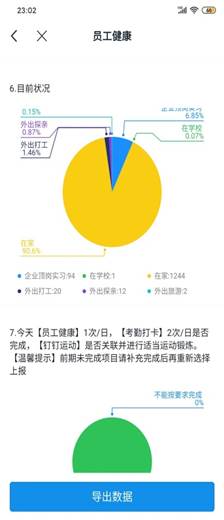 三、精准掌握疫情数据。习近平总书记在北京市调研指导新型冠状病毒肺炎疫情防控工作时强调,要运用大数据等手段,加强疫情溯源和监测。信控公司自疫情肆虐以来,22名班主任、辅导员牺牲休息时间,党员干部带头,积极响应省教育厅、公司对疫情防控数据的具体要求。以教职工假期信息汇总表、疫情防控期间教职工信息报表为基础,建立了公司教职工疫情防控数据动态管理台账。自1月26日起着手建立《信控学工》钉钉群,系统设置纵向5层架构,领导小组负总责、2017/2018/2019三个年级群分别由辅导员负责、各班级群班主任具体负责;横向架构员工党支部群、班主任群、班长群、员工干部群等交叉管理。通过网络平台对全院25个班级、1377名师生,进行精准数据采集和统计。【员工健康】全面掌握每日员工健康情况,引导员工进行学习活动;【钉钉运动】进行适当的身体锻炼,提高免疫力。同时完成公司【完美校园】疫情数据填报任务。班主任为班级第一责任人,落实不按时填报原因,真正做到数据精准、有据可查、责任到人、科学防控。