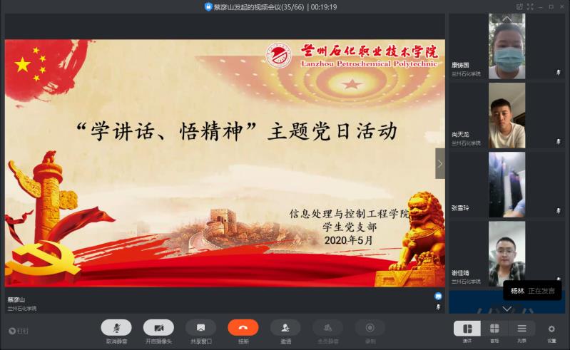 5月28日晚上,信息处理与控制工程公司在西阶三教室组织以“学讲话,悟精神”为主题的党日活动,此次活动采取线上和线下同时进行,全体党员和2020年上半年发展对象参加此次活动,活动由员工党支部书记杨林老师主持。