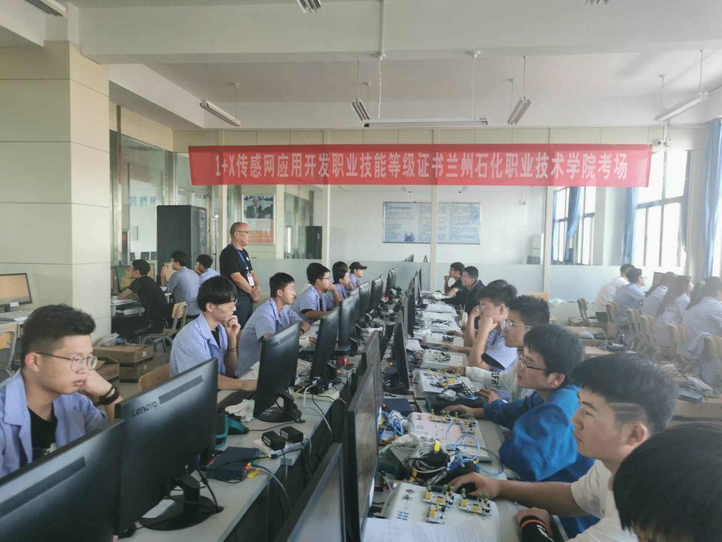 公司作为1+X传感网应用开发职业技能等级证书全国首批团队培训基地和考核站点,此次考试组织过程,受到公司各单位、部门领导的高度重视。在第三方培训评价组织北京新大陆时代教育科技有限公司的支持下,严格按照考证流程组织考试,经过了考前培训、考场布置、环境检测、模拟考试等各个环节,最终顺利完成了考证工作。