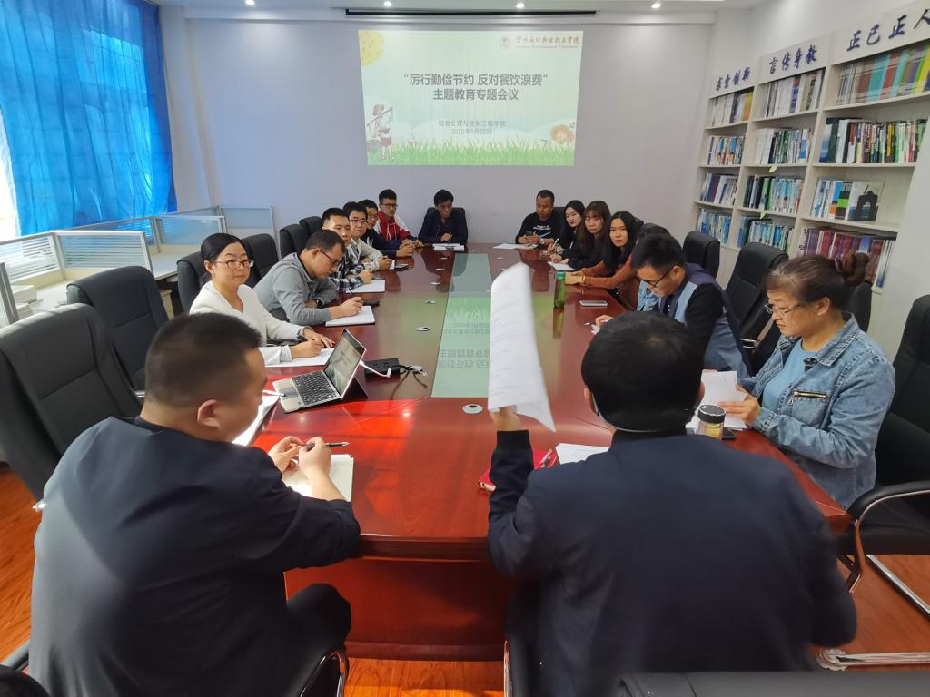 为深入贯彻落实习近平总书记重要指示精神,弘扬勤俭 节约传统美德,结合公司主题教育活动精神,信息处理与控制工程公司组织召开“厉行勤俭节约 反对餐饮浪费”主题教育专题会议,公司主管员工的领导、辅导员、班主任参加本次会议。
