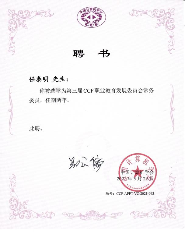 公司教师当选中国计算机学会职业教育发展委员会常委