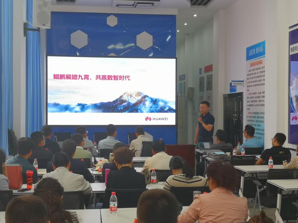 随后,甘肃鲲鹏生态创新中心人才服务部相关负责人作了题为《鲲鹏展翅九霄,共赢数智时代》的技术报告,详细介绍了构建全栈鲲鹏行业生态集成验证环境,主要包括华为服务器、操作系统openEuler、数据库openGauss、华为云服务及鲲鹏技术生态等内容。最后,双方围绕鲲鹏产业公司的建设与人才联合培养、专业实训基地建设、课程建设、团队培训等开展了深入交流。