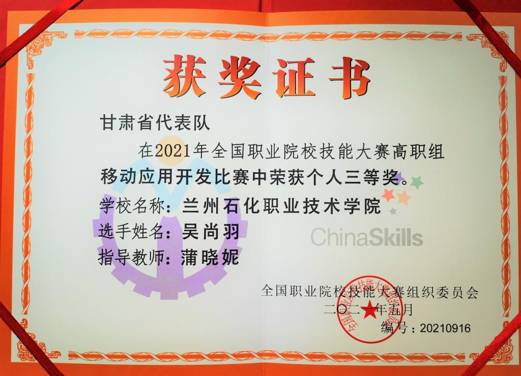 6月10日,2021年全国职业院校技能大赛高职组“移动应用开发”赛项在山东科技职业公司落下帷幕,公司信息处理与控制工程公司参赛队代表甘肃省参加了此次国赛。来自全国省(市)、自治区的31支代表队参加了此项竞赛。公司选手吴尚羽沉着应战、努力拼搏最终取得了国赛三等奖。同时,吴尚羽作为31支代表队中的唯一女性选手,赛后接受了特别采访。
