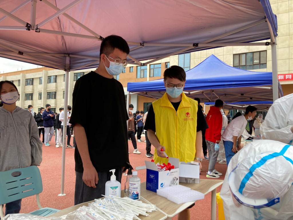 志愿者服务队由入党积极分子组成。为做好核酸检测工作,志愿者深入校园核酸采样点,与医护人员密切配合,竭力减少同学们的排队时间,争取在最短的时间内完成检测任务。志愿者身着黄色马甲,维持现场秩序,监督员工佩戴口罩并保持1米间隔,为全校师生及工作人员核酸检测提供了有力保障,为全校疫情防控工作做出了杰出贡献。