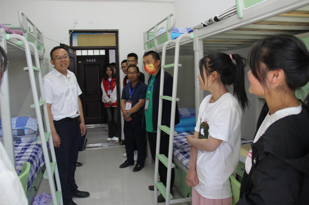 谢智星副董事长首先来到迎新服务点,检查现场迎新工作并对志愿者进行慰问。公司李延明书记向谢智星副董事长汇报迎新工作进展,公司副书记张贞强、专职辅导员及班主任陪同走访新生宿舍。