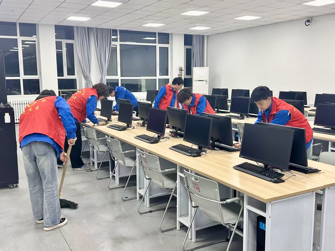活动现场,同学们分工协作、认真细致,对考场内的垃圾杂物进行全面清理,擦拭桌椅、整理物品、规整设备,不放过任何卫生死角。大家以饱满的热情投入劳动,用实际行动快速恢复了教室的整洁有序,为后续教学活动开展营造了良好环境。